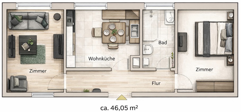 Die Wohnung befindet sich im 1. Obergeschoss und überzeugt durch eine praktische und gut nutzbare Raumaufteilung. Dank der bestehenden Vermietung profitieren Sie von laufenden Mieteinnahmen und einer sofortigen Rendite.